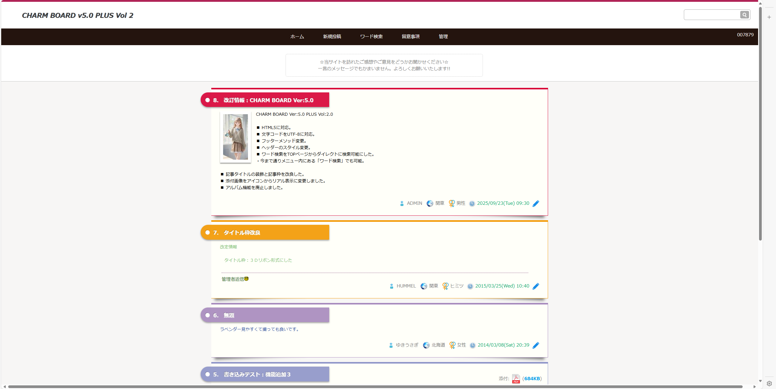 +-- charm / charm.cgi [755] ... 掲示板本体
