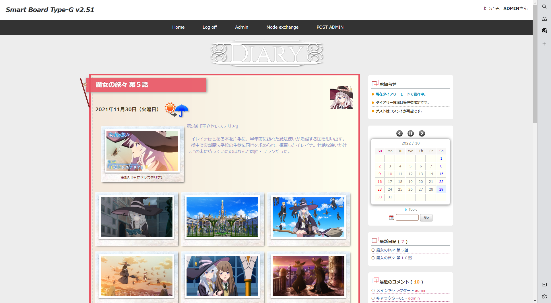 - ダイアリーモードがあります。(管理者のみが投稿編集可能)